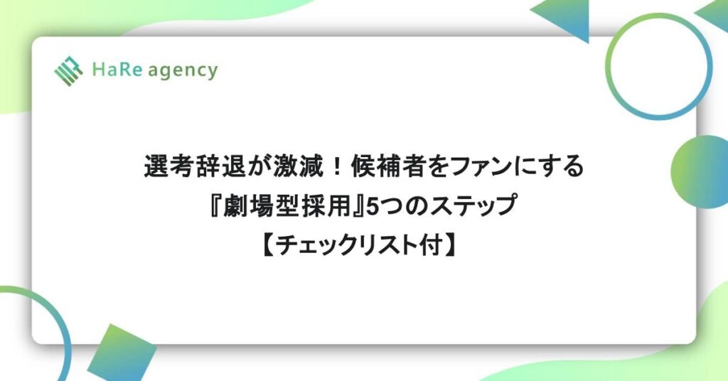 選考辞退が激減!候補者をファンにする『劇場型採用』5つのステップ【チェックリスト付】
