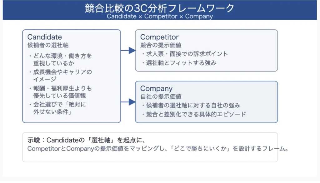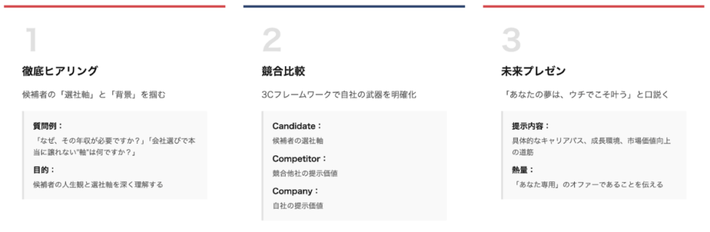 この一言が、単なる「金額勝負」から、候補者の人生に寄り添う「“選社軸”勝負」へと、土俵を切り替えるスイッチになります。