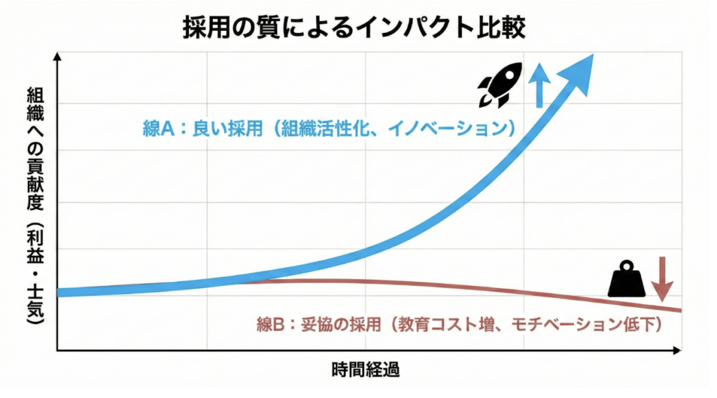 逆に、妥協した採用がもたらす「負債」は甚大です。