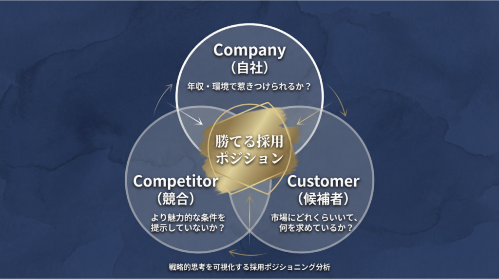 Competitor(競合): ライバル企業はもっと高い給与や、魅力的な働き方を提示していないか?