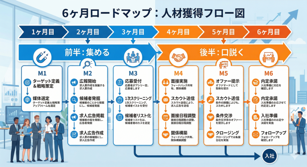 半年で採用を仕組み化する——前半3ヶ月と後半3ヶ月