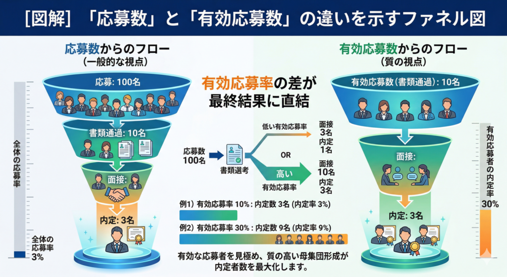 大事なのは「有効応募」——つまり、書類選考を通過し、実際に面接する価値のある応募をどれだけ集められるか。