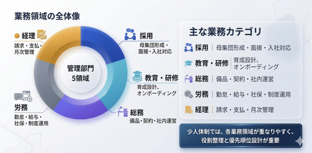 管理部門として、ひとりで全部回している。こんな状態の会社がほとんどではないでしょうか。